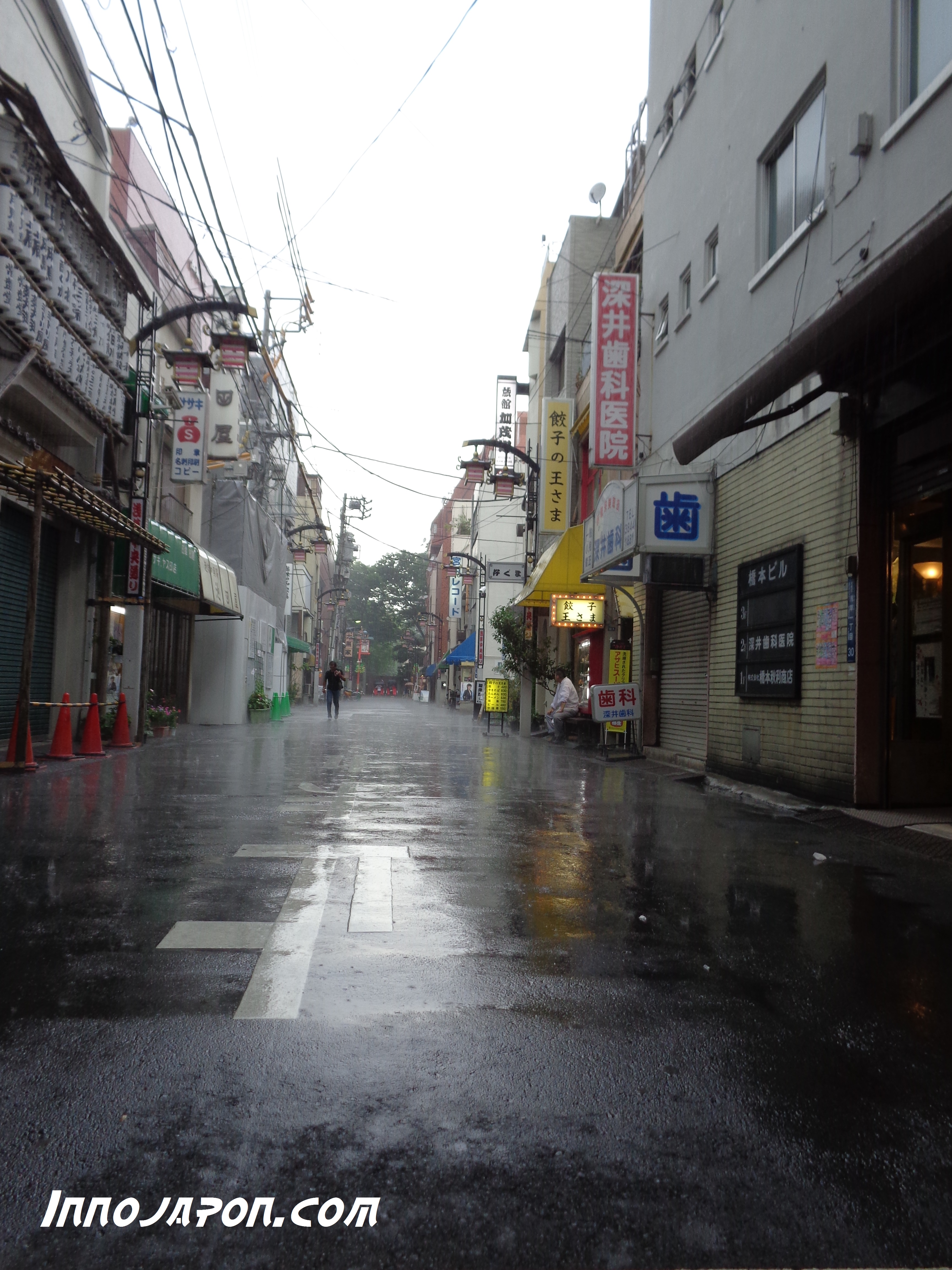 18 heures, je pense me diriger vers la célèbre Tokyo Sky Tree (on la voit sur la photo des filles en Yukata) qui culmine à 530 mètres et des poussières de hauteur. J’aimerai bien voir ce Fuji-san qui se cache depuis que je suis arrivé ! Sur le chemin je sens une goutte de pluie, puis deux, puis toute une averse. Il est temps de s’abriter. La galerie commerciale adjacente à la station de métro qui était vide il y a encore 5 minutes devient pleine à craquer ! Je cherche donc un café et aperçoit sur le chemin quelqu’un dont la photo est sur plein de publicité nous faire la démo de ses ustensiles de cuisine :D.