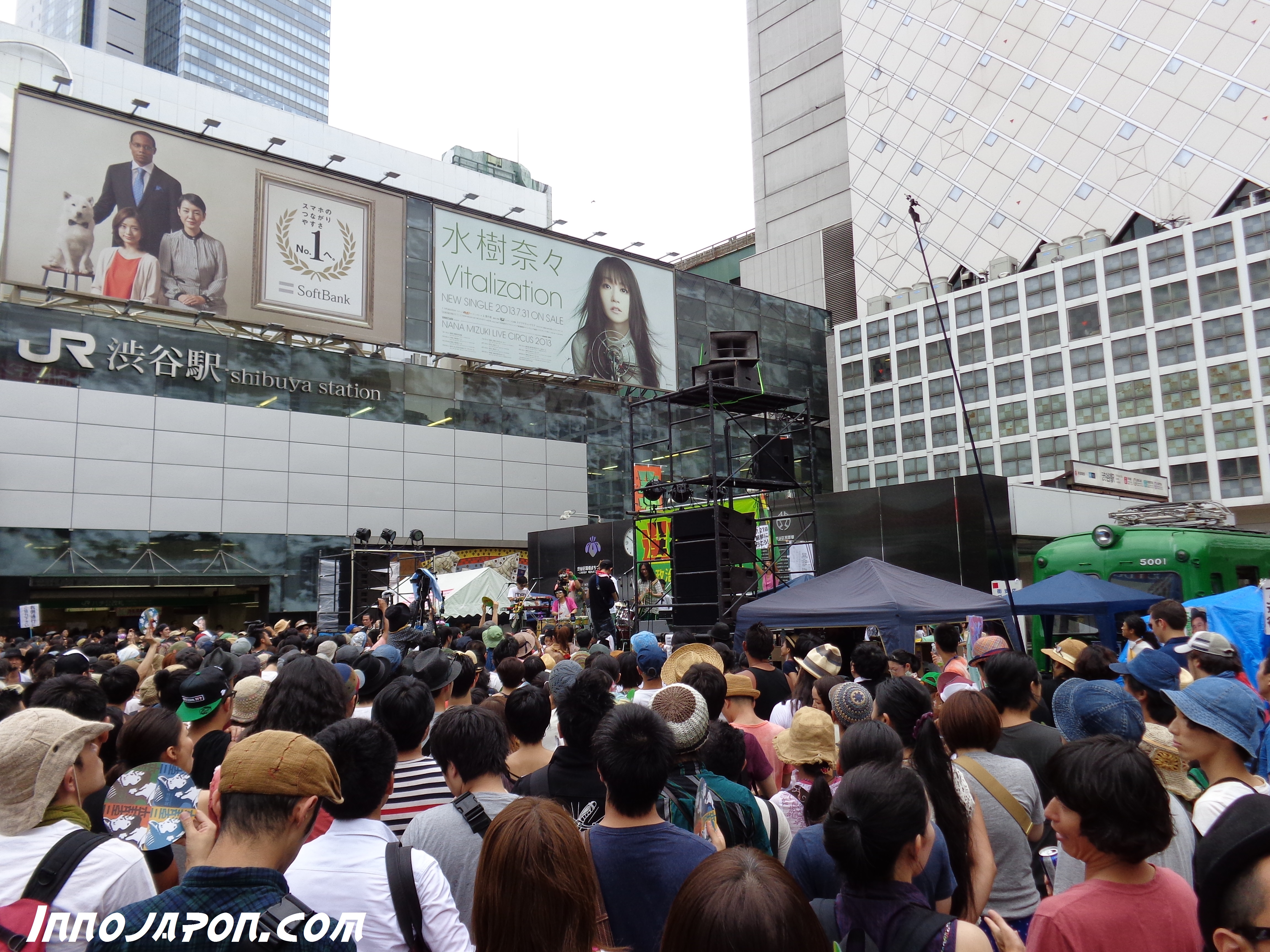 Quelques heures après, de retour à Shibuya, la foule n’a presque pas diminuée. La musique, elle, est d’avantage présente. D’un côté les jeunes artistes qui veulent se faire un peu d’argent (j’ai d’ailleurs trouvé une jeune japonaise qui jouait super bien du saxophone malgrès son jeune âge apparent), et d’un autre la campagne de vote. Ce soir en revanche la musique est plus psychédélique, et les gens ne semblent pas tous dans leur état normal ! Néanmoins le tout reste très bon enfant et on se sent toujours en sécurité.