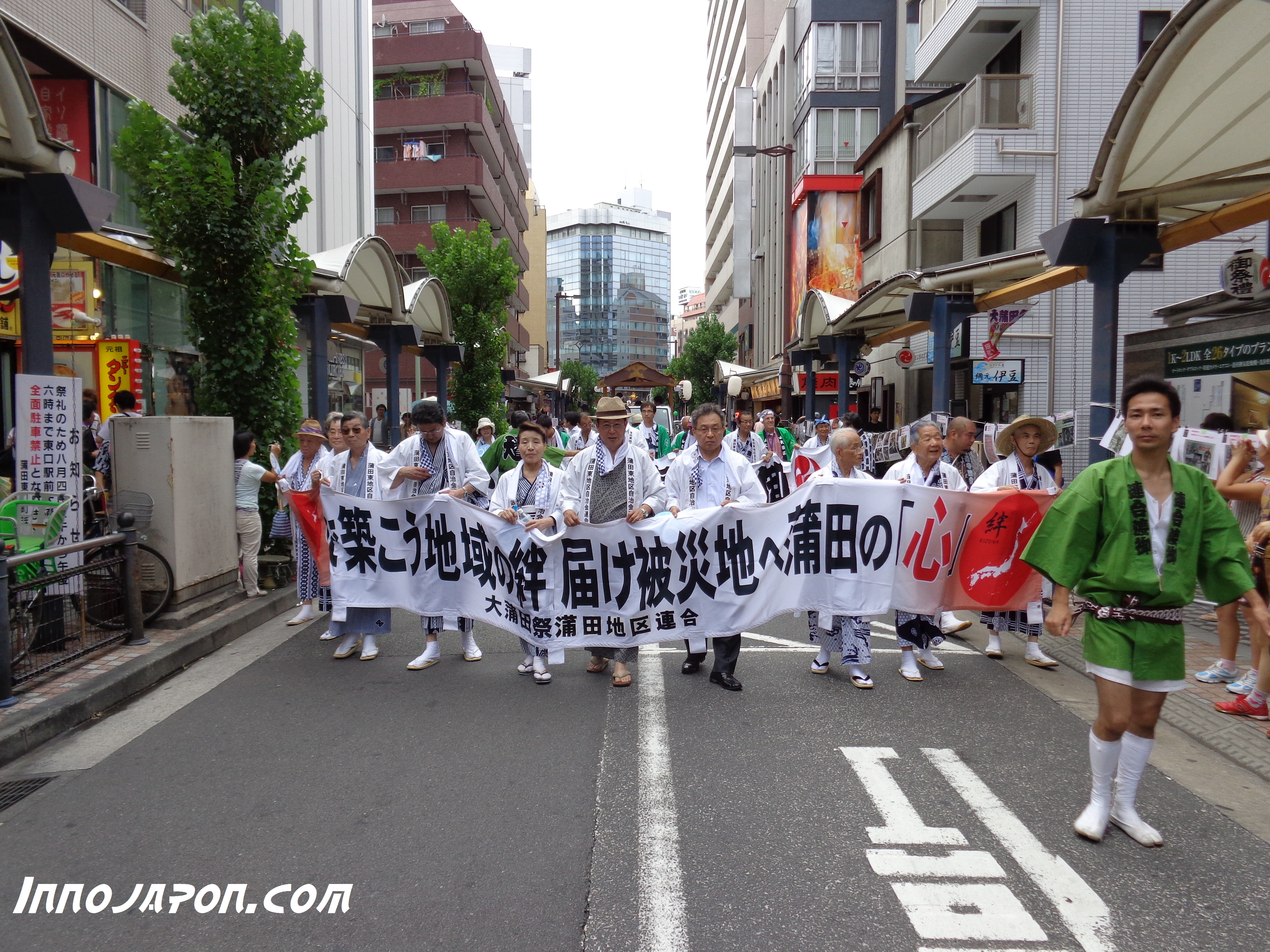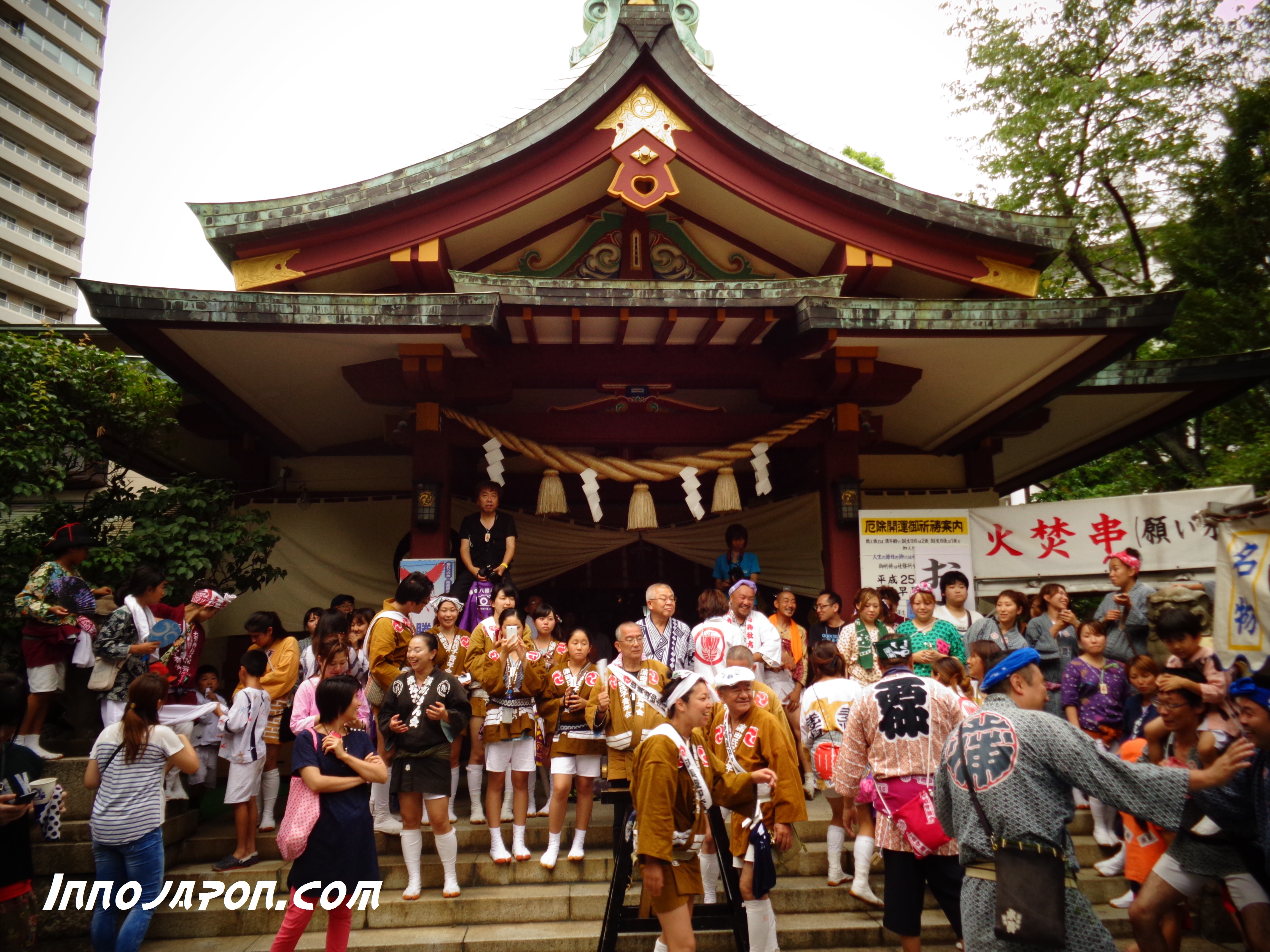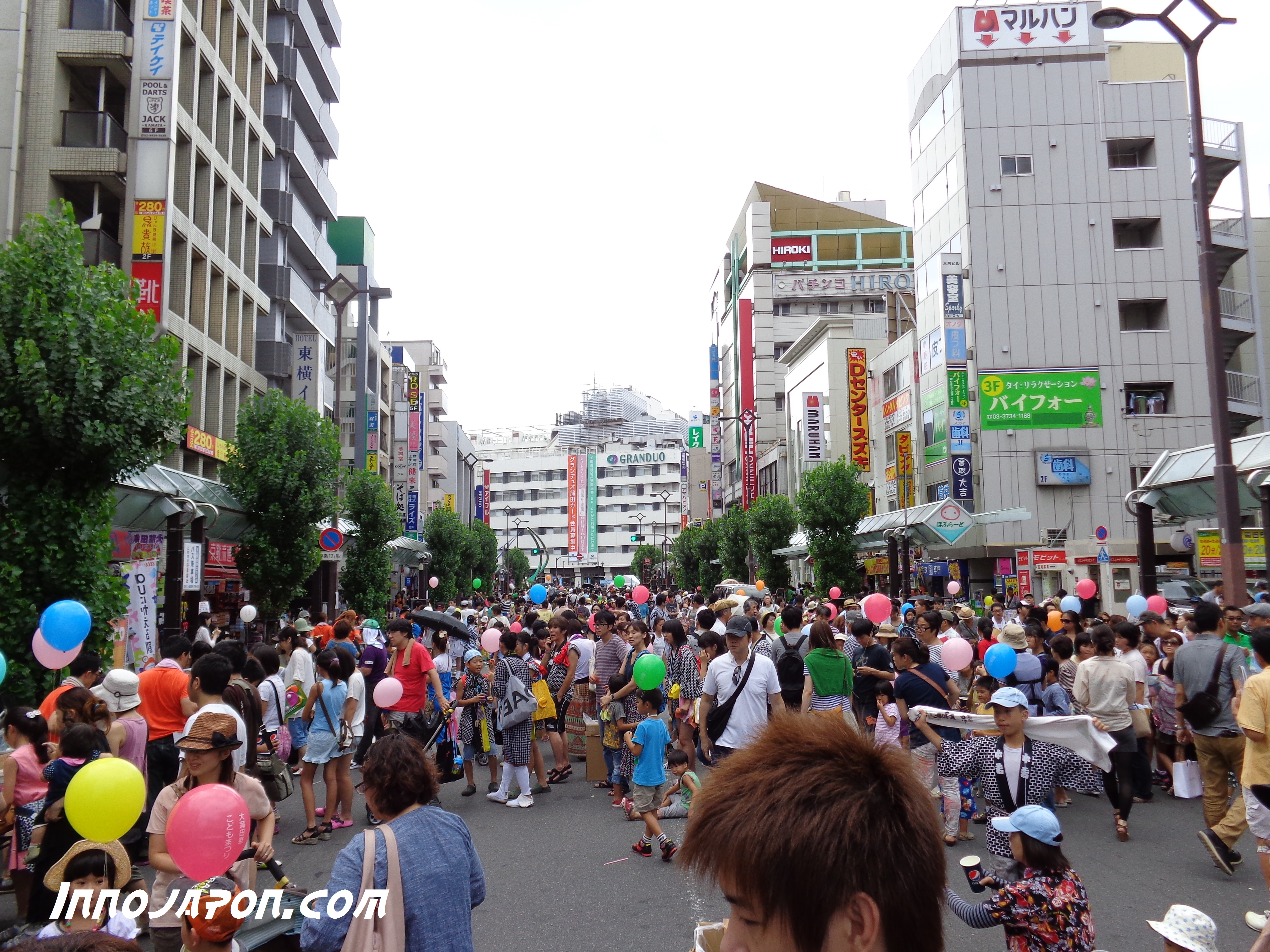 Ce matin je sors de chez moi pour aller m’acheter du matériel de calligraphie (de quoi me motiver à travailler mes kanjis j’espère !). Armé de mon sac à dos et de mon appareil photo (si vous voulez apprendre un mot en japonais, ici on appelle ça « kaméra » ), me voilà dans la rue. Je fais quelques mètres et je ne retrouve plus le chemin que je cherche: tout a complétement changé en l’espace d’une nuit ! Il y a de la foule partout, de la musique, des odeurs de barbecue et plein d’autres choses. Je m’arrête donc pour regarder tout ça !