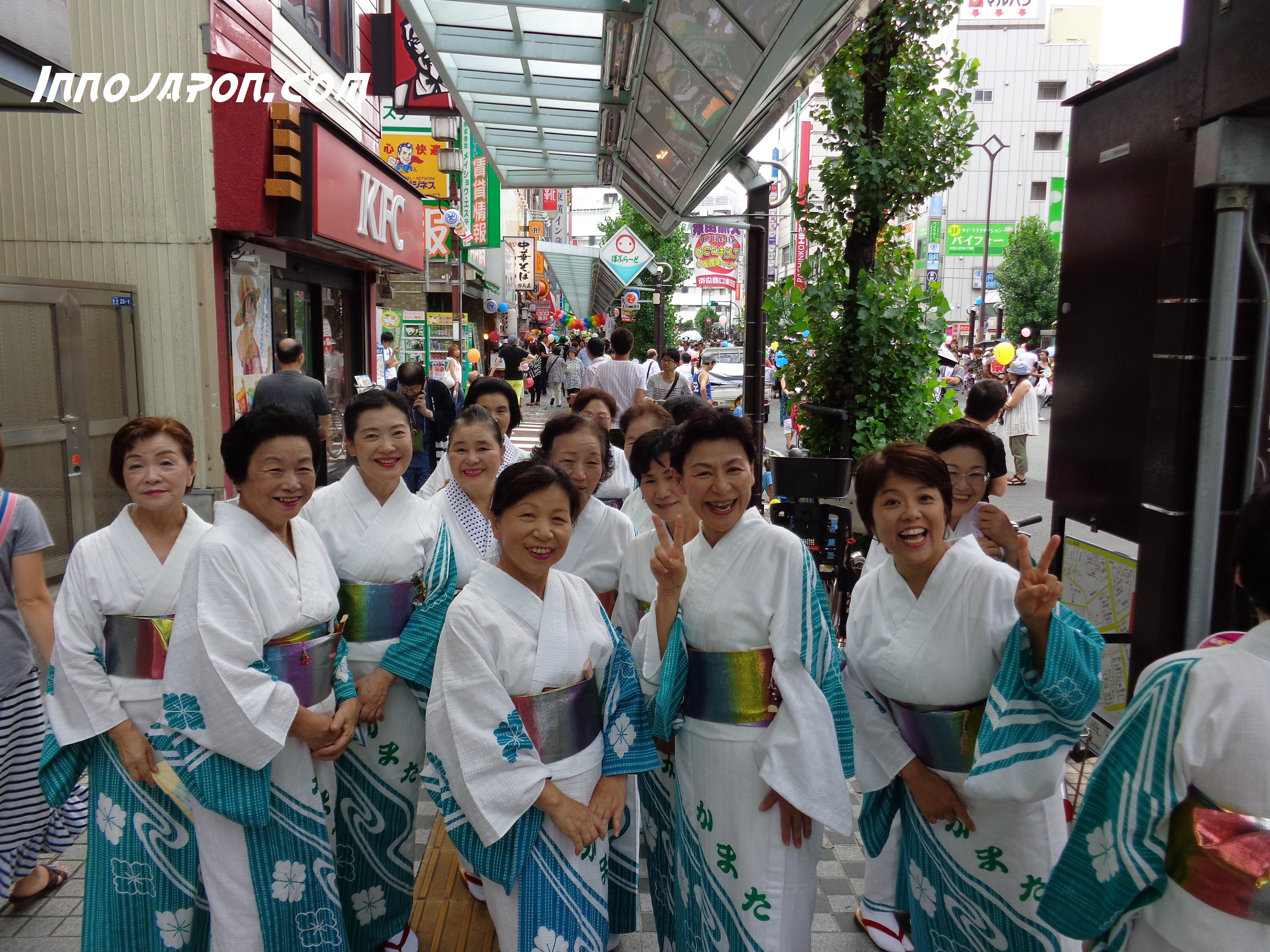 Je continue mon petit bout de chemin et tombe sur un groupe de femmes en yukata, prêtes à aller faire leur représentation. Je me lance le mini-defis d’aller demander la photo, elles me répondent « comment refuser une photo, surtout si c’est un gaijin qui nous le demande en japonais ! » (gaijin signifie étranger, c’est pas péjoratif ici de dire ça ).