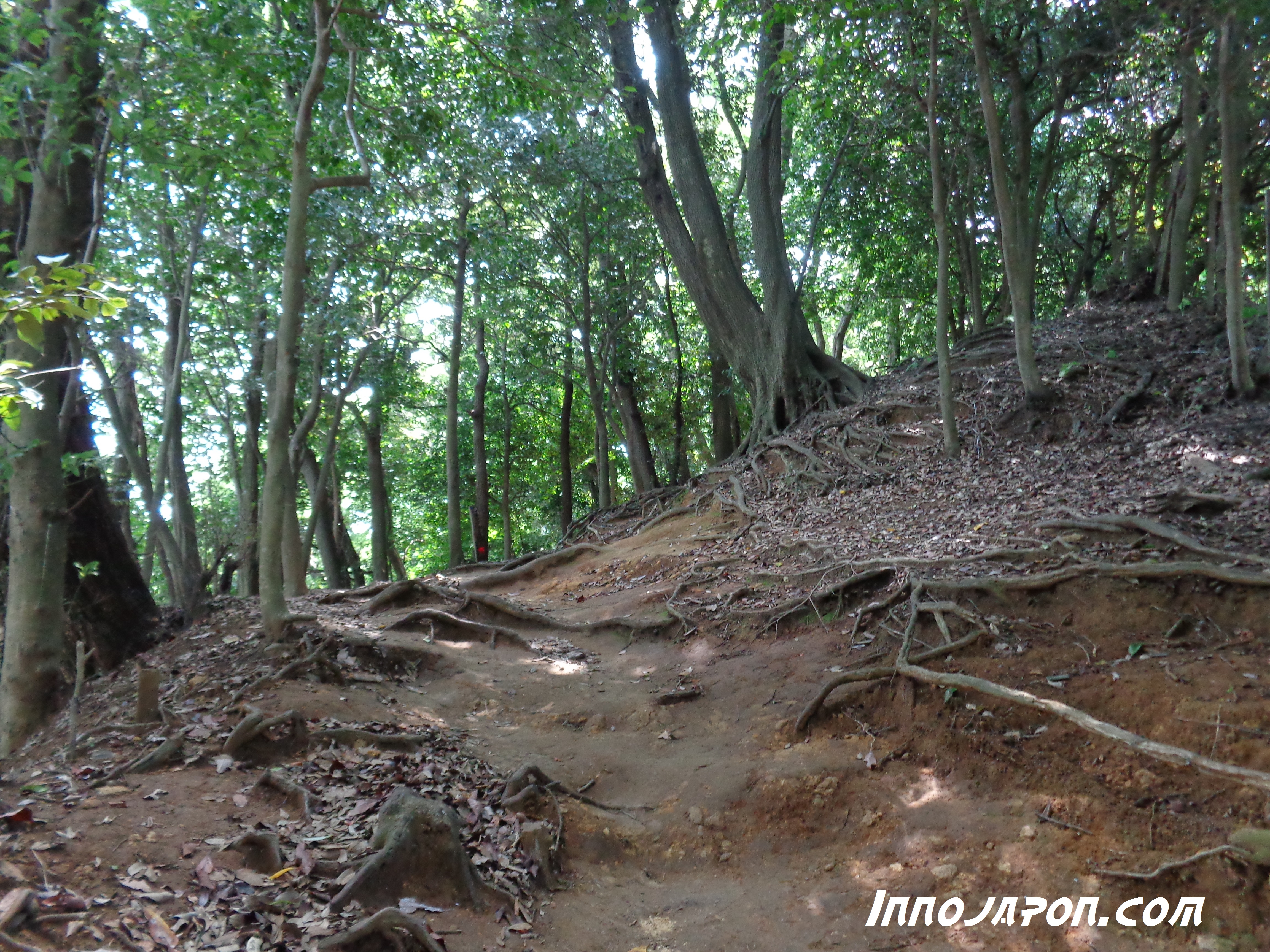 Vous vous imaginez, il est 13 heures, il fait très chaud et je n’ai toujours pas mangé. Qui plus est, je sais que je dois quitter Kamakura vers 16 heures, ce qui me laisse 3 heures pour atterrir au point 2: le Grand Bouddha ! Je suis actuellement au point numéro 3, je me dis donc que je vais faire une pierre deux coup et traverser la forêt pour passer par tous les lieux remarquables.