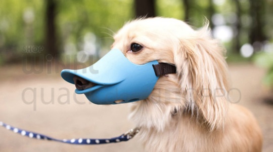 La muselière en bec de canard. L’image fait sourire et pourrait même faire passer un chien aux allures agressives pour un gentil toutou.